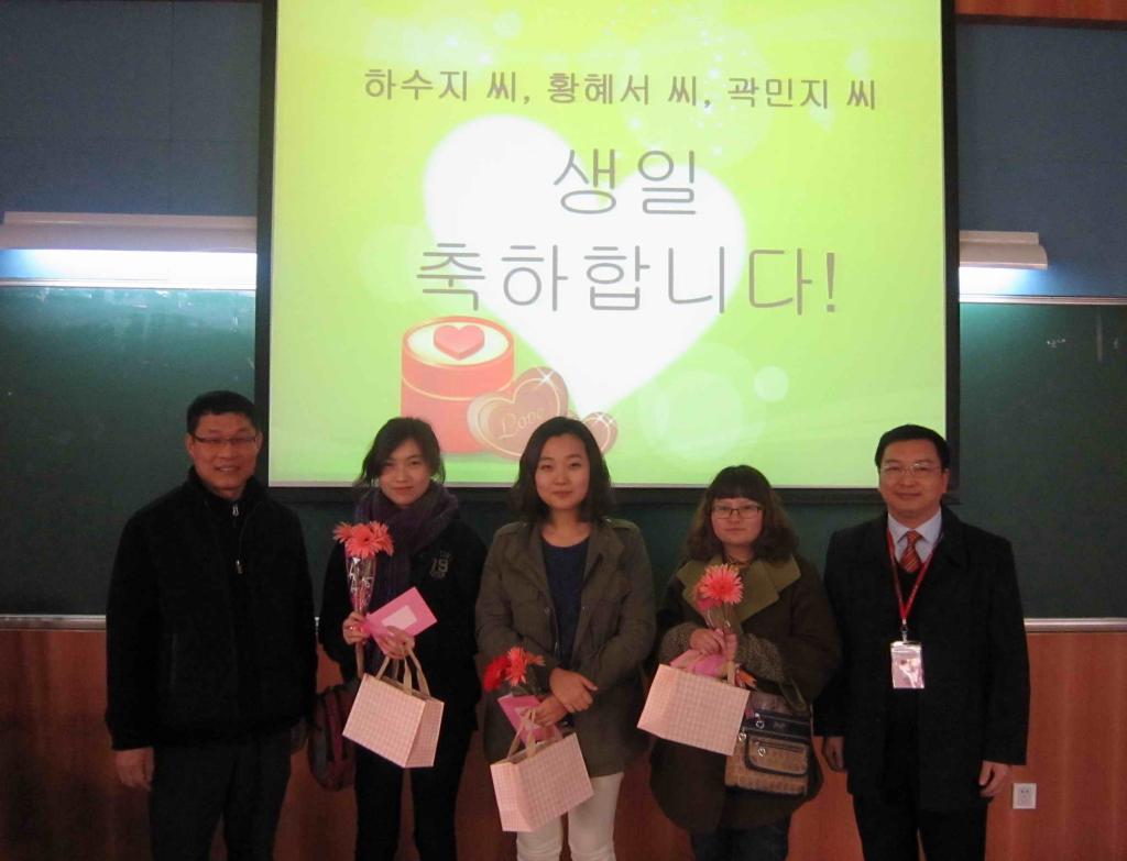 During the ceremony, Mr. Liang Xuehong also delivered birthday gifts to three girls from Chosun University since it was their birthday. The accompaniment of the Korean version of the Happy Birthday song added a brush of sweetness and warmth to the ceremony.