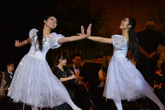 The concert was composed of multiple and colorful elements. Classical and modern pieces of music, played together, creating a whole new vision of the moment. Western and Chinese-type music collided here-and-there to create a fascinating mix for all the audience. There were Edvard Grieg's Peer Gynt, Suite No.2 for flute and clarinet, Taylor Swift's Love Story for piano and cello and even the theme music of the Sister Act and of the Lion King. Accompanied by trumpet and jazz drum, the sprightly rhythm jumped up and became more lively on the stage. When the wood wind instruments appeared, the concert stepped into the traditional Chinese part. Folk music like Jasmine and