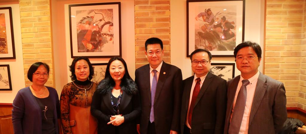 On the afternoon of November 23rd, the visiting group paid a visit toSHEN Yang (Education Minister Counselor of the Chinese Embassy in the UK), too. President ZHONG introduced GDUFS’s program to absorb more overseas talents to him. SHEN said that the Education Minister of the Chinese Embassy in the UK will strongly support GDUFS.