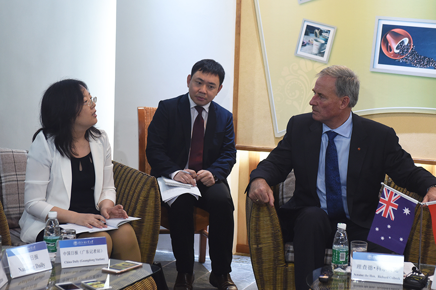 In the Q&A session, Senator Colbeck answered various questions raised by GDUFS News and students in presence, which were related to the Free Trade Agreement, the Confucius Institutes, international education strategy, and so on. Representing the government, he promised a strong future for students who are involved in vocational education, which equips them with the skills required for their career. Moreover, he ensured that further people-to-people links, business-to-business links and institution-to-institution links will be built through multi-dimensional cooperation.