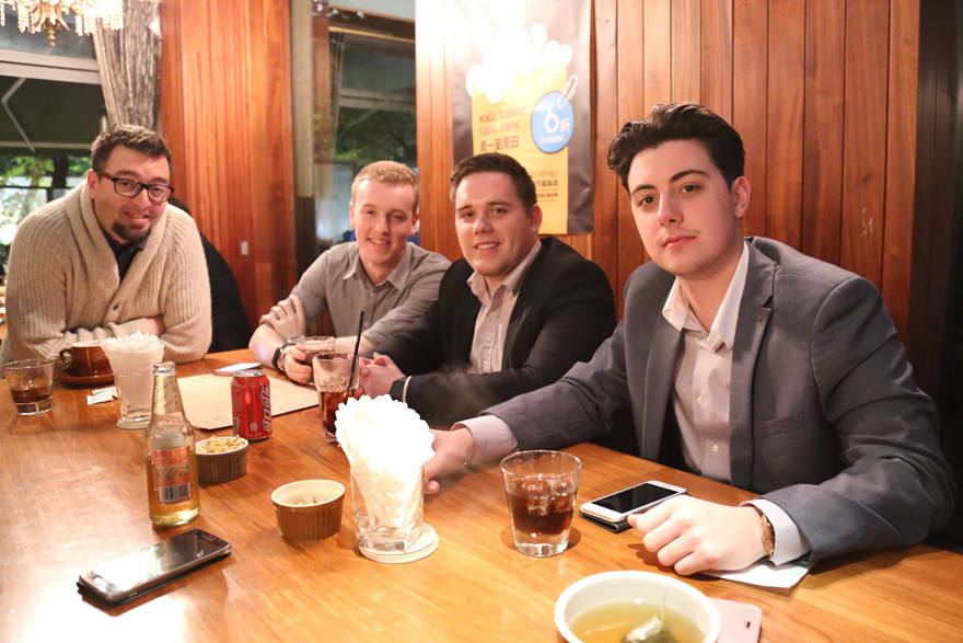 Members of the group (with Jake on the left) enjoying some well-deserved drinks