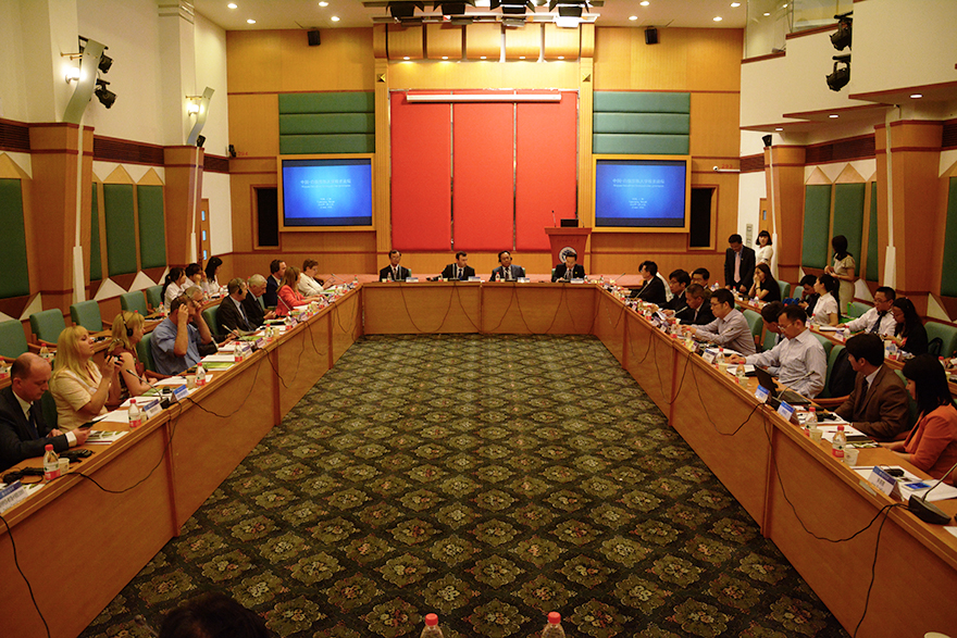On May 21st, the China-Belarus University Presidents’ Forum was held in the International Convention Hall on the GDUFS North Campus. Representatives from 20 universities attended the meeting, including Guangdong University of Foreign Studies, South China Normal University, Southeast University, Maxim Tank Belarusian State Pedagogical University, Minsk State Linguistic University and Polotsk State University. FANG Fanquan, Vice President of GDUFS, hosted the forum and extended his warm welcome to the attendees.