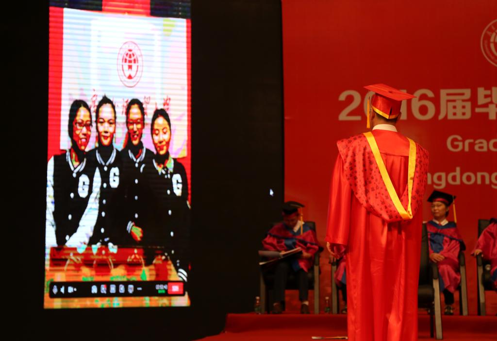 Moreover, there was a major highlight at this year’s ceremony. President ZHONG had a short video chat with four GDUFS graduates who are volunteering services in the Confucius Institute of Peru, and he expressed his congratulations and best wishes to them. Meanwhile, the four students also expressed wishes to their schoolmates, teachers and GDUFS.