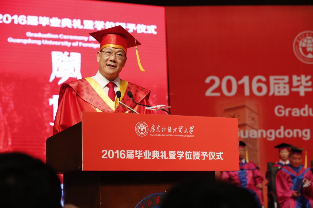 President ZHONG Weihe opened the ceremony by delivering an inspiring speech. He recalled the graduates’ happiness and bitterness during their four years at GDUFS, and he also urged the students to always appreciate the company of parents, the edification of teachers and the friendship of schoolmates.