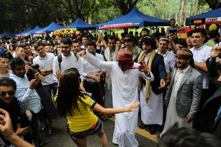 Not long after the opening ceremony, the street wascrowded with students and visitors from both on and off campus, anticipating the activity. And our foreign friends didn’t let them down.