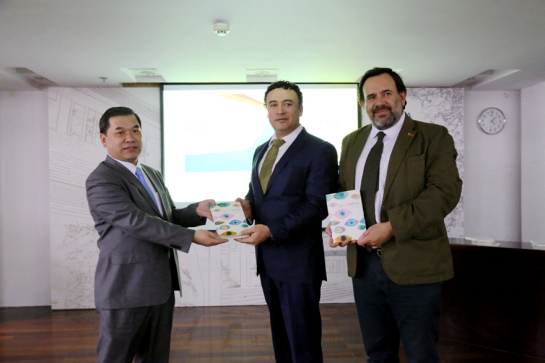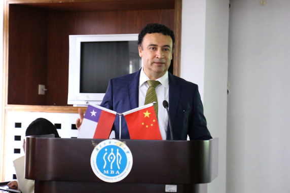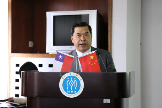 Firstly, Vice President JIAO Fangtai delivered a welcome speech. After extending his sincere welcome to all delegates, Vice President JIAO stated that since the establishment of diplomatic ties 47 years ago, China and Chile have witnessed satisfactory development in bilateral cultural communications. On account of the long-standing cooperative bond, GDUFS has conducted a close cooperation with Chilen Embassy in China. Also, GDUFS and University of St. Tomás in Chile exchange students every year, and both universities held seminarsin order to study Sino-Chile relations. Vice President JIAO finished his speech by expressing his hope of strengthening the cooperative tiesand promoting cultural understanding.