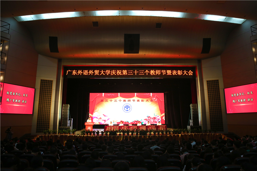 On September 7th, the staff of GDUFS gathered together and attended a congress in Yunshan Hall on the North Campus in celebration of the 33rdTeachers’ Day. At the congress, advanced teams and individuals were commended with certificates of merit and silk banners. SUI Guangjun, General Secretary and Presidentof GDUFS, delivered a sincere speech to express his appreciation to all the contributions teachers had made, and his great expectations for the next school year.The congress was hosted by the Vice President of GDUFS YANG Aimin.