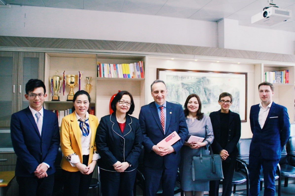 The delegation also visited the Institute for International Education. WANG Fenglan, Vice Dean of Institute for International Education, introduced the conditions of studying, the courses, the scholarships for foreign students, the summer camps and the short-term training at GDUFS to the delegation.