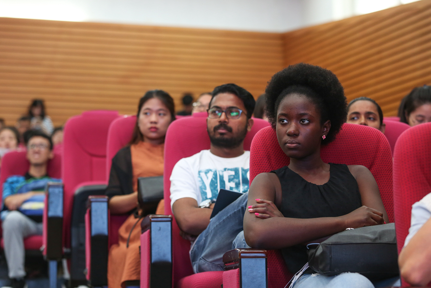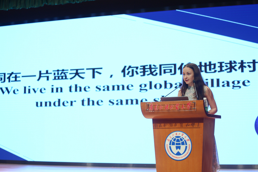 After the address, four lecturers, including WEI Chuanguang from Jinan University; ZUO Pengjun from South China Normal University; Stephen Rake from the School of Interpreting and Translation Studies at GDUFS and WU Jingshu, a Russian student from GDUFS, impressed the audience with an intense collision of diverse values around one shared future.