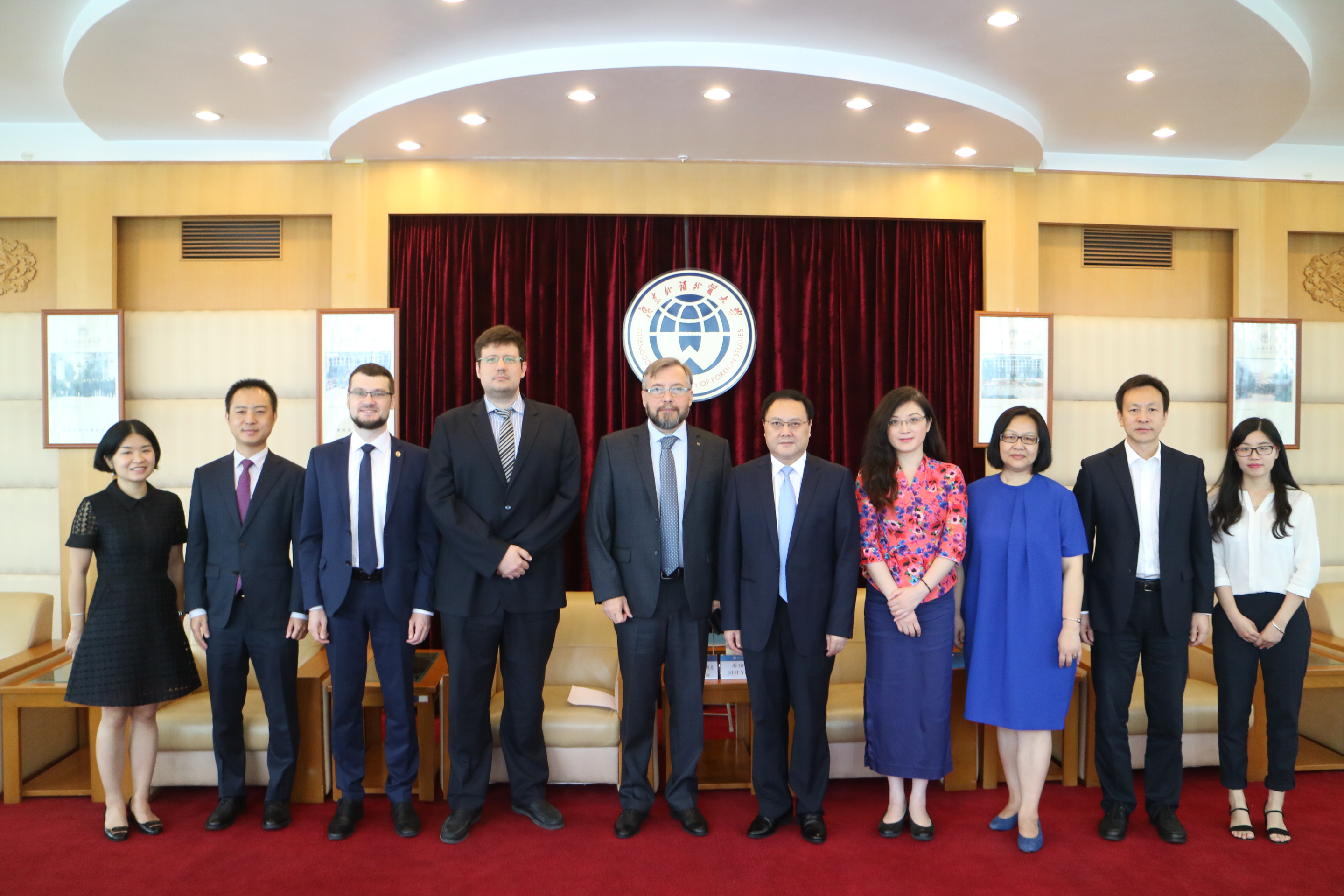 On July 13th, Viktor Pashkov, the new Russian Consul General in Guangzhou, and his team visited GDUFS. SHI Youqi, the President of GDUFS, met the guests in the VIP Room of the North Campus Lounge. Both sides discussed the issues about the cooperation between GDUFS and Russian colleges and universities.
