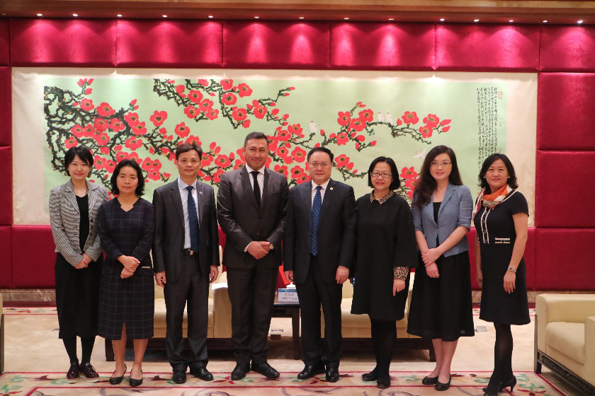 LIANG Jie, Secretary of the Party Committee of School of Economics and Trade; YANG Ke, Dean of Faculty of European Languages and Cultures; CAI Hong, Dean of Institute for International Education; and other representatives of the Office of International Cooperation and Exchange also attended the meeting.