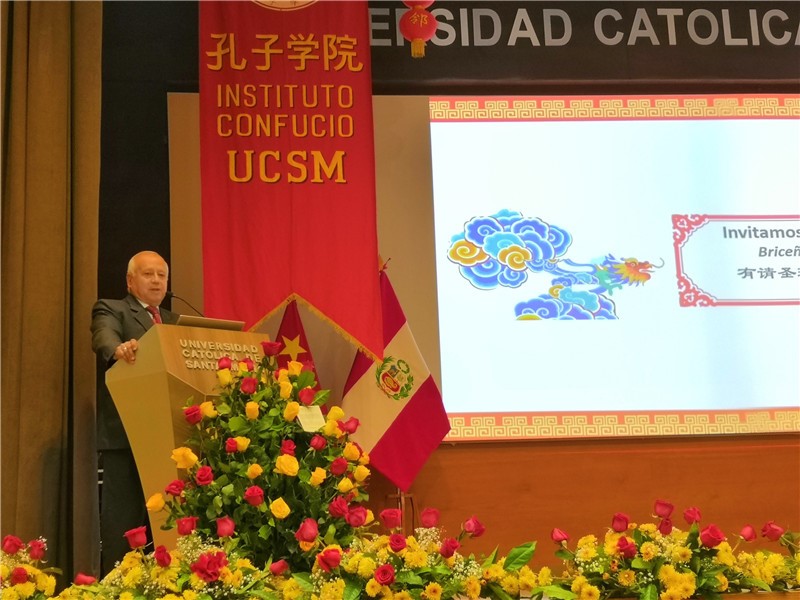 On the evening of January 1st 2019 (local time), the 2019 Spring Festival Gala Evening themed Join Hands to Create a Better Future was held at the school hall of the Catholic University of Santa Maria in Arequipa, Peru. More than 400 people, including School administrators, officials from different academic institutes, and students and teachers had a joyous gathering to celebrate Chinese New Year.