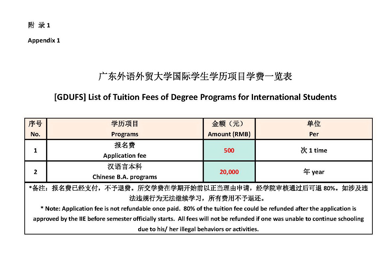 Appendix 1. [GDUFS] List of Tuition Fees of Degree Programs for International Students
