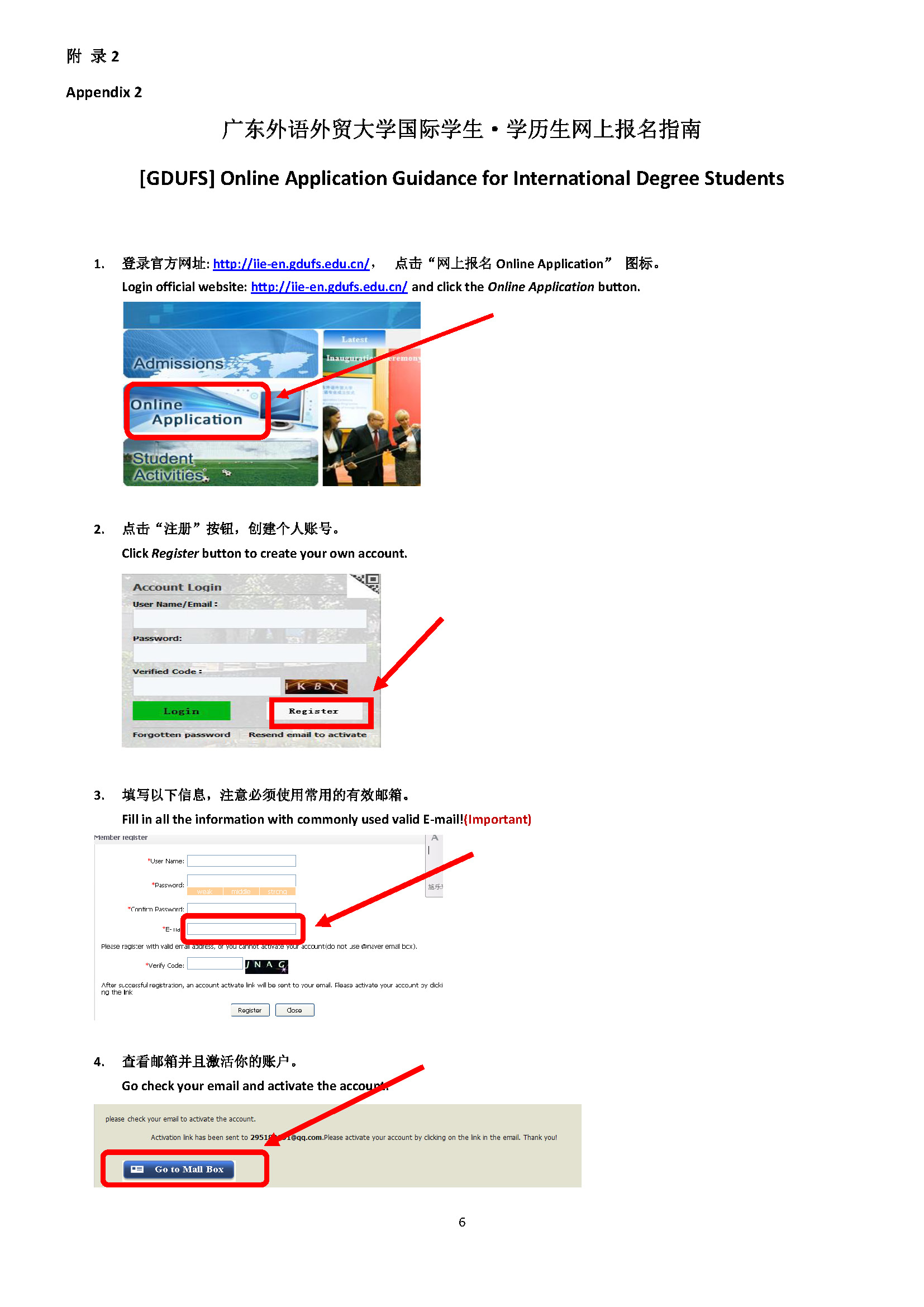 Online application. Applicants please submit online application through http://gdufs.17gz.org/ and please get confirmation via phone call (0086-20-36207141) or email (studyiniie@gdufs.edu.cn) to the Admission Office, Institute for International Education (Admission Office, IIE).