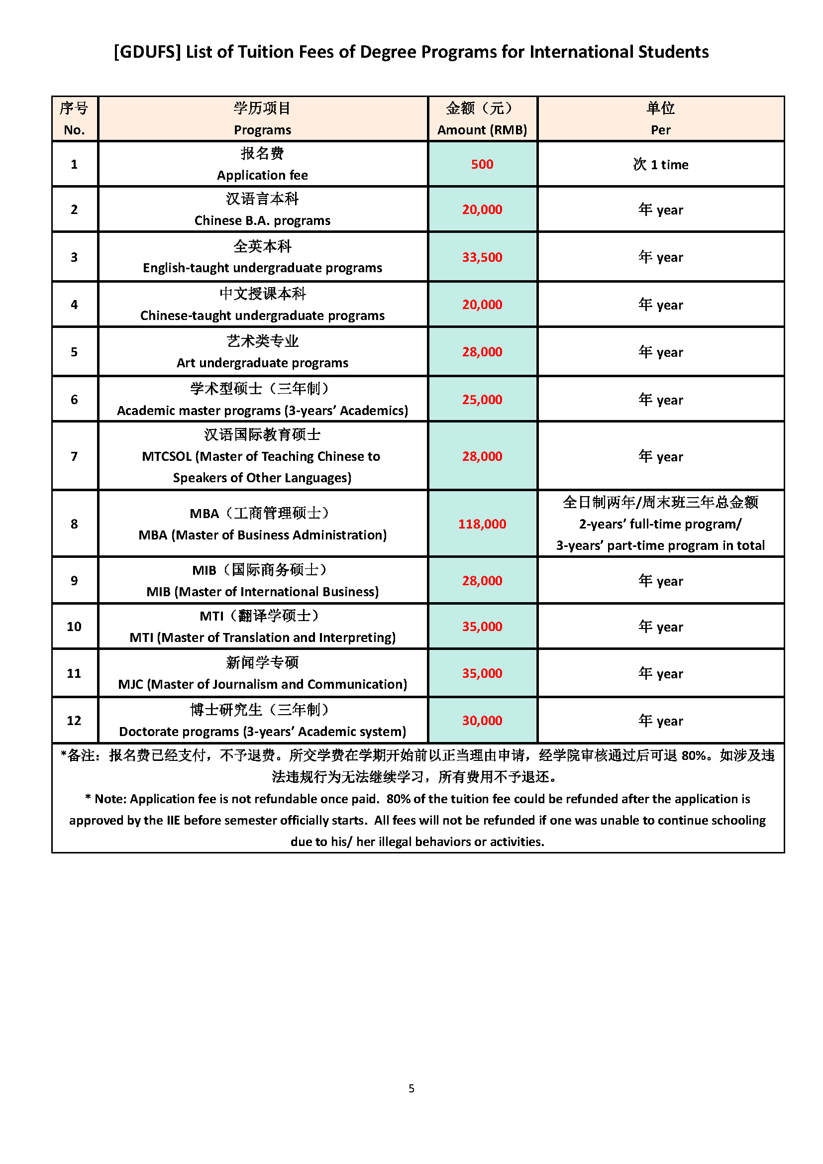 Appendix 1. [GDUFS] List of Tuition Fees of Degree Programs for International Students