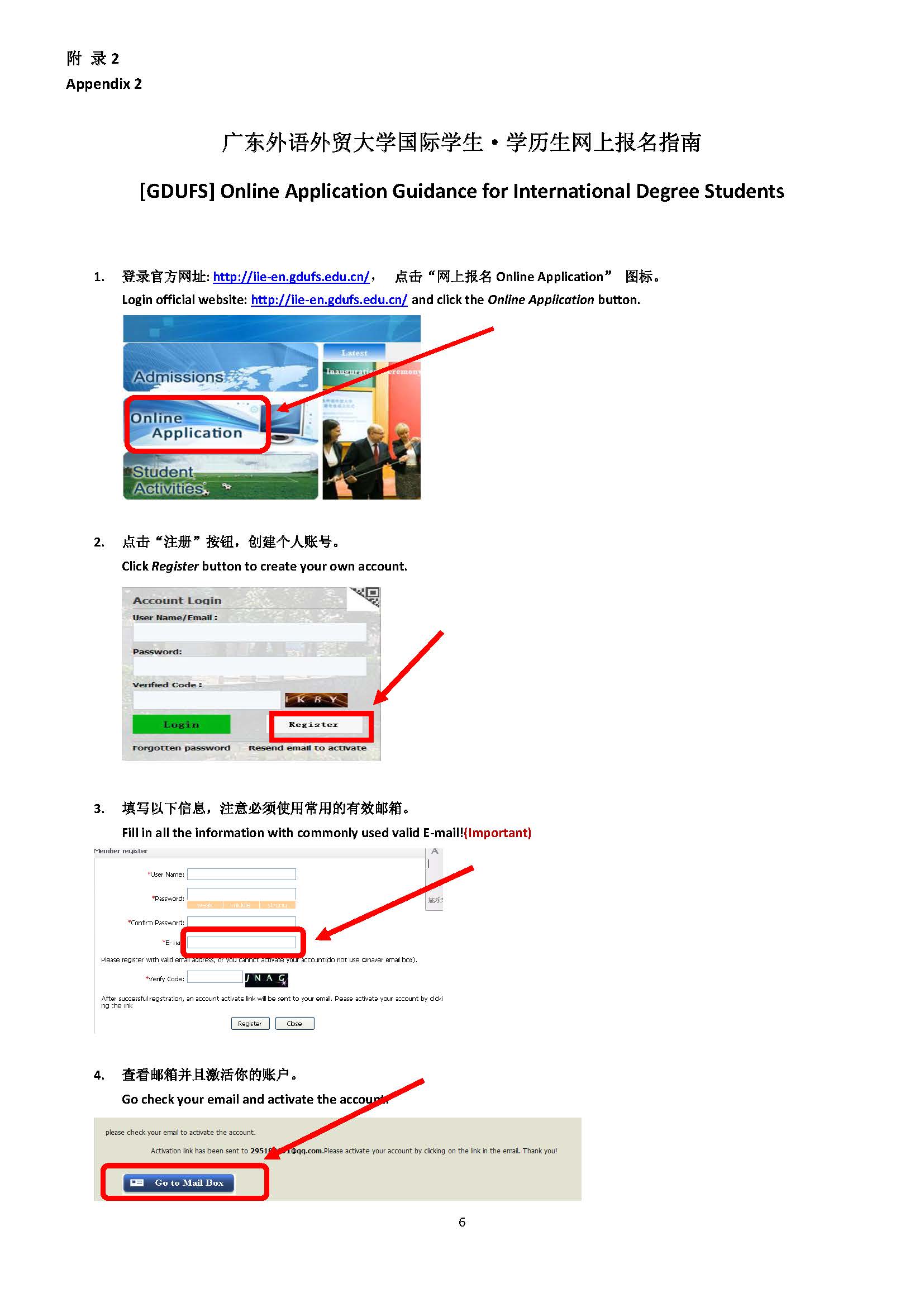 Online application. Applicants please submit online application through http://gdufs.17gz.org/ and please get confirmation via phone call (0086-20-36207141) or email (studyiniie@gdufs.edu.cn) to the Admission Office, Institute for International Education (Admission Office, IIE).