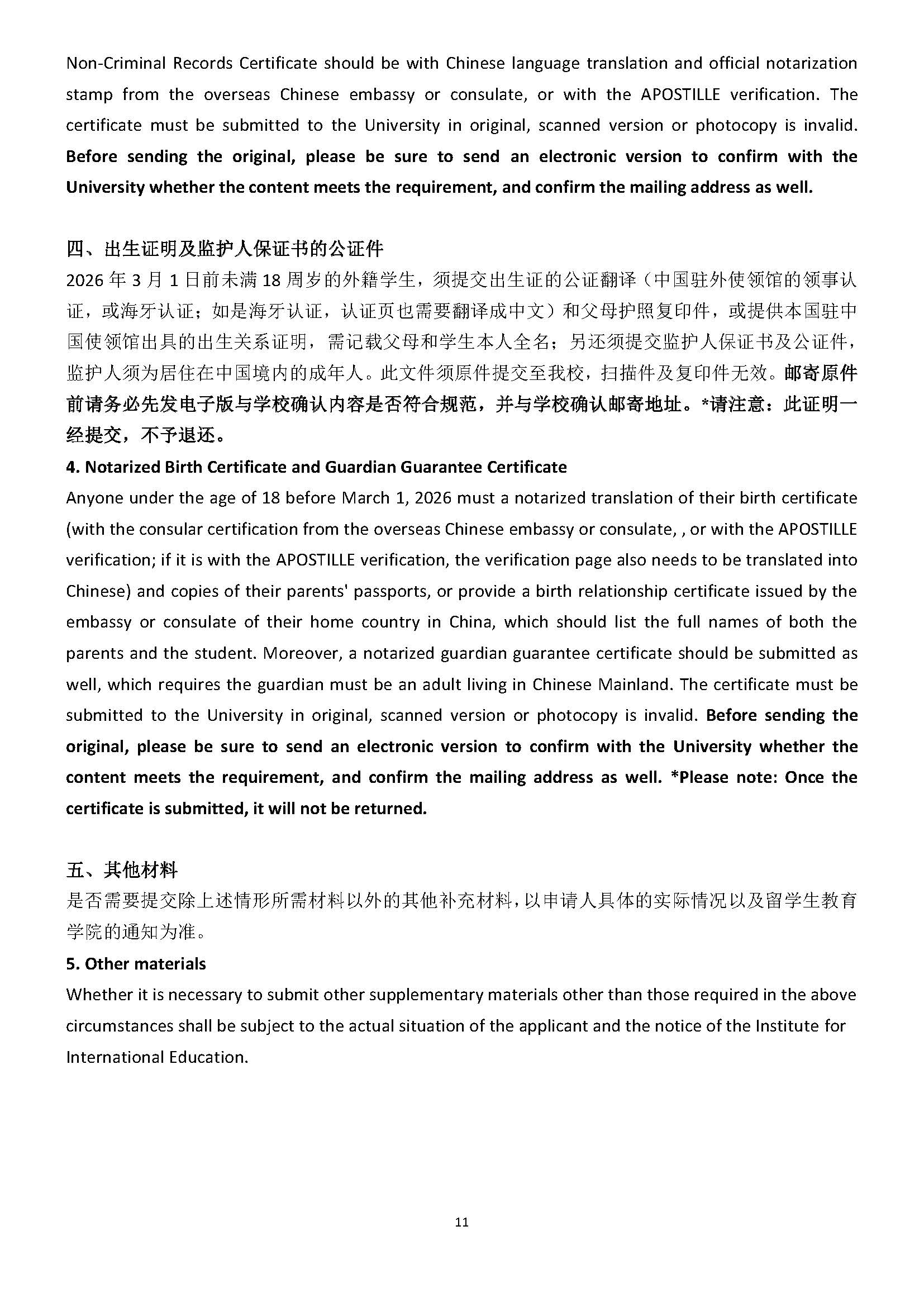 2. Photocopy of new HSK level 5 certificate with score of 180 points or above for those who applying for Chinese-taught programs, and in additional: