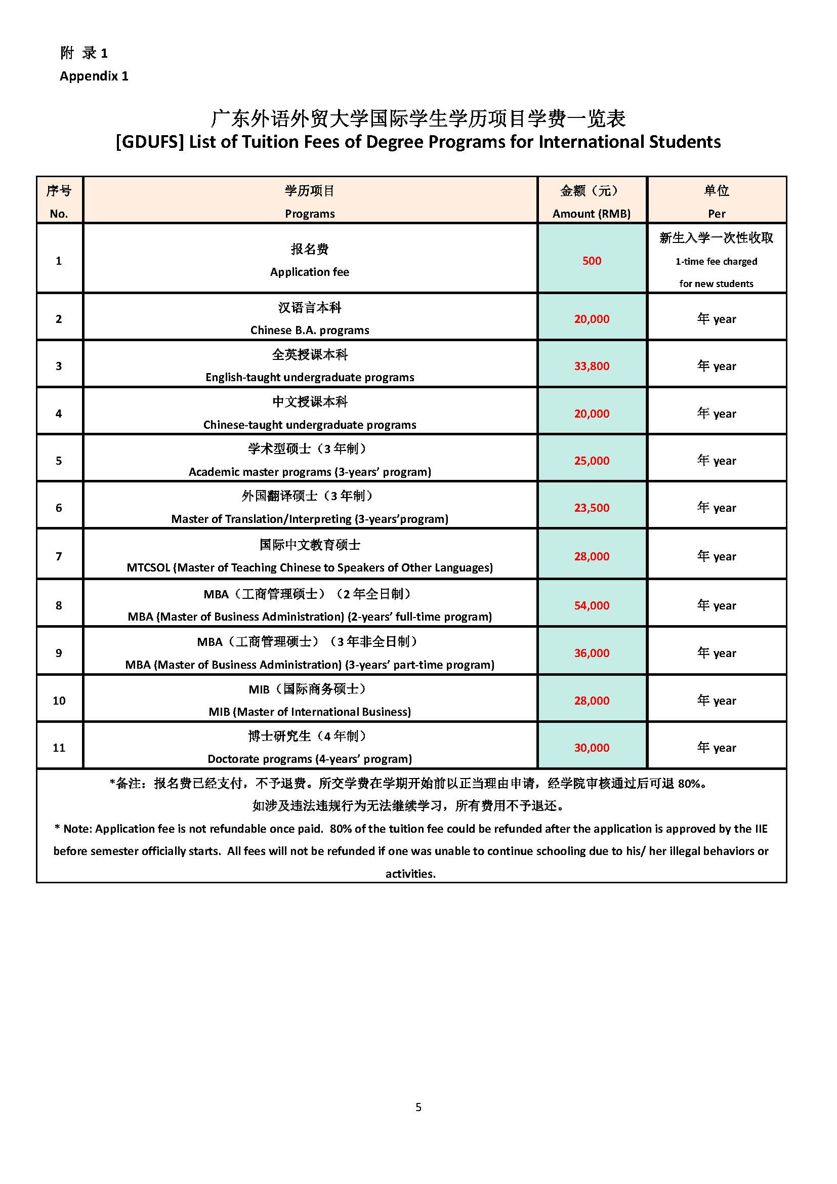 Appendix 1. [GDUFS] List of Tuition Fees of Degree Programs for International Students